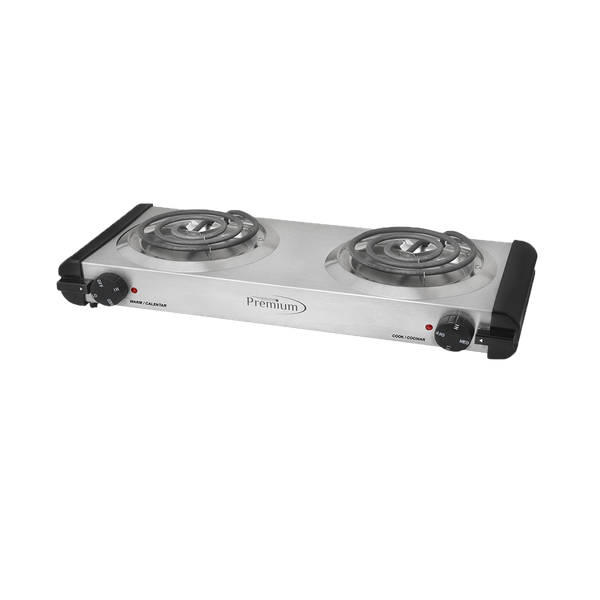 Premium Double Electric Burner Deluxe Stainless Steel body Metal drip pan 1000W