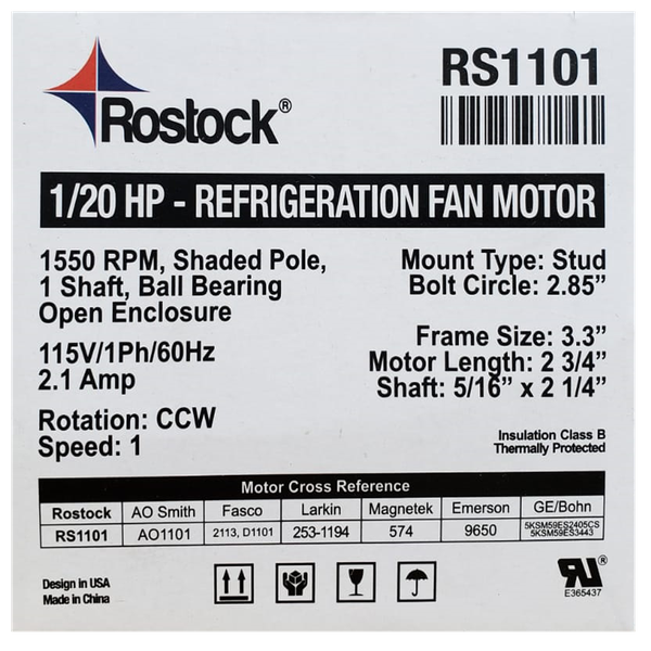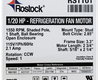 ROSTOCK - SHADE POLE FAN MOTOR 1/20HP 115V 50/60HZ 1550 RPM CCW SHAFT 5/16" BALL BEARING