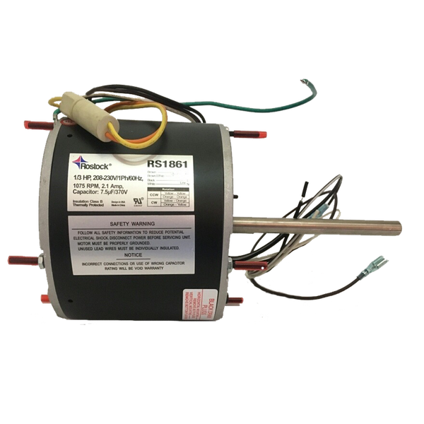 Air-Conditioning Condenser Fan Motor, 1/3 HP, 208-230V, 1Ph 60Hz, 1075 RPM, 2.1 Amp, capacitor 7.5µF/370V